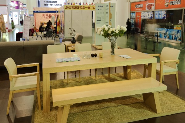 在展会现场,不少人知道地板与墙板都是钢木结构的空心大端板搭建时,会好奇地用脚跺一跺感受大端板的牢固性,现场还有一张大端板制成的桌子,桌面能承受56个人在上面跳舞;