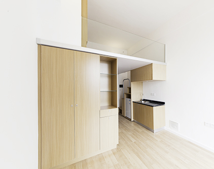 同时,大端楼板由于采用钢木结构,面板为实木复合板。在楼上,这层板就是经久耐用的木地板,在楼下,这层板无需粉刷,可直接当做吊顶使用,不需要像传统倒板完工后还需地面找平,这为住户可是省了一笔不小的装修费用。