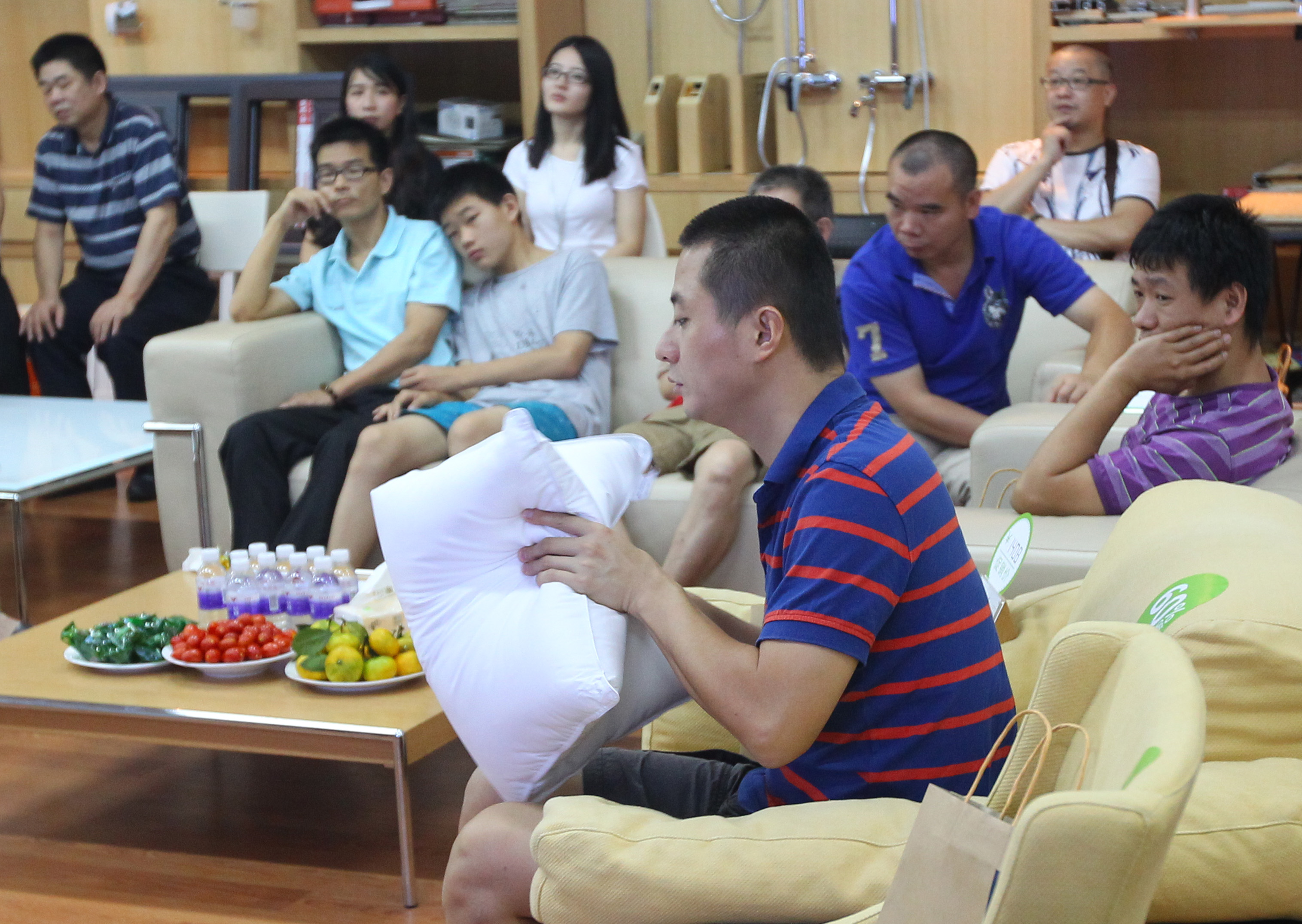 水性漆、无醛胶、钢木结构的E0级大端板、欧洲高端沙发才会用的内置金属钢架、高端汽车坐椅用的高回弹塑模成型海绵、高端床垫用的独立袋装弹簧、一板两用的大端墙板与大端楼板……课堂上,产品导师娓娓道来大端的主要特色工艺与材料,哪怕一个枕头都加了特制的独立袋弹簧以增加枕头的支撑力,让学员们既大开眼界,又感受到了大端的细心。连摄影记者都十分心动,让家人赶紧来看看。