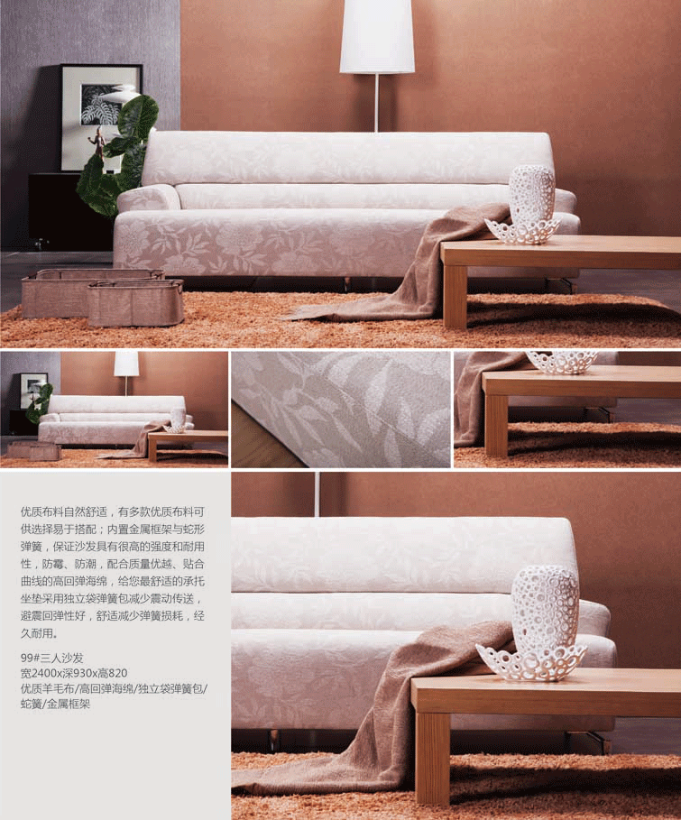 - 填充物: 高回弹海绵、独立袋弹簧包