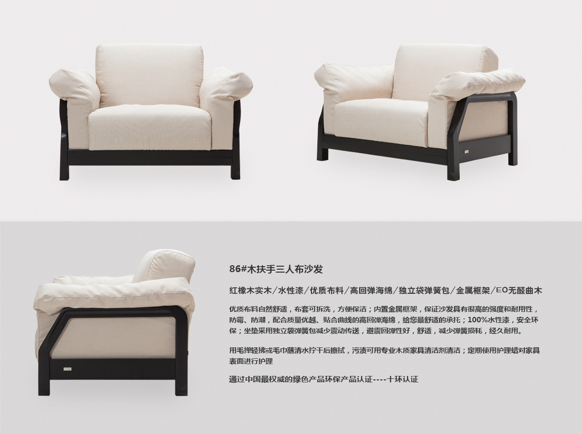 - 产品名称:86#木扶手单人沙发