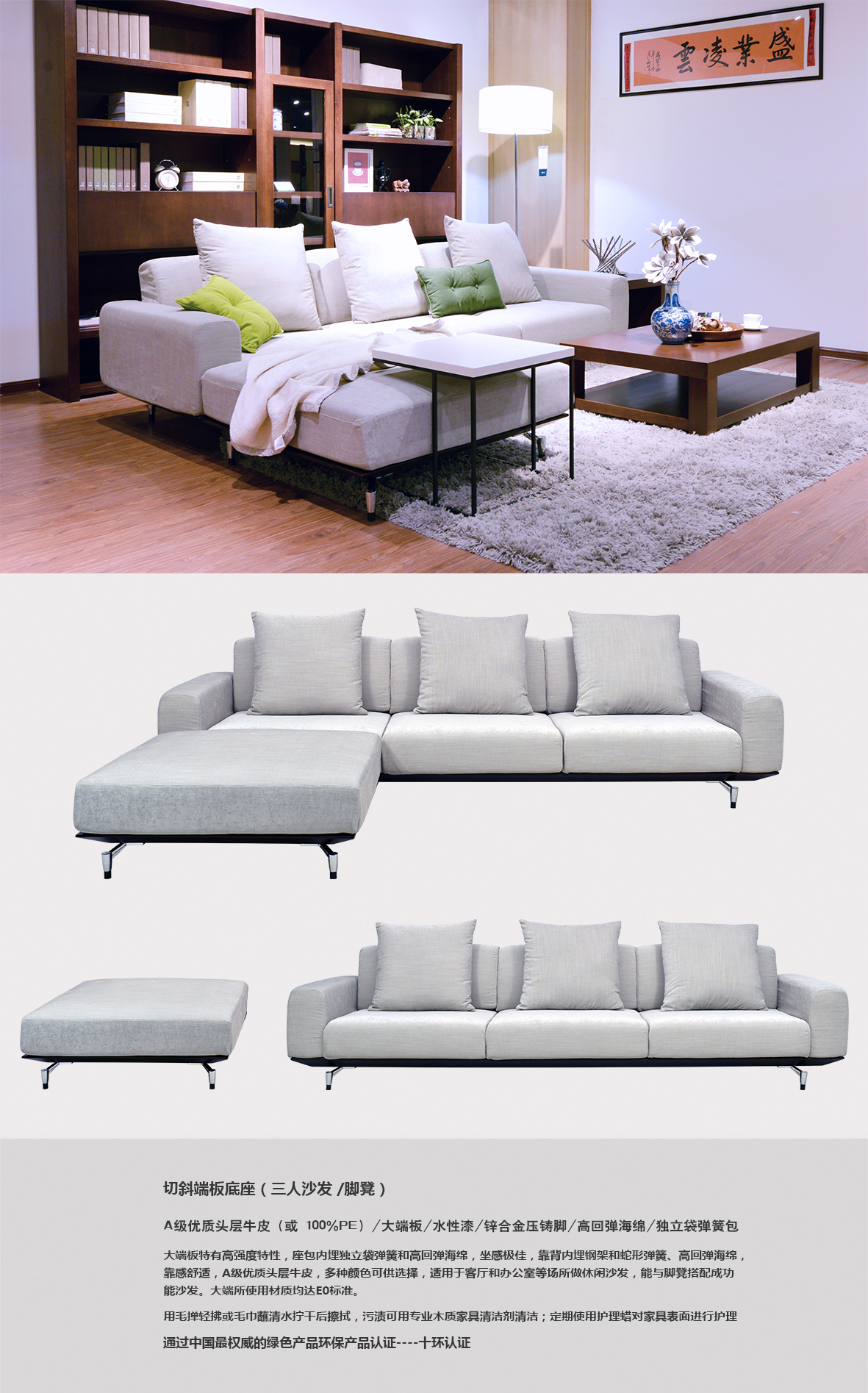 - 产品名称:切斜端板底座三人沙发/脚凳