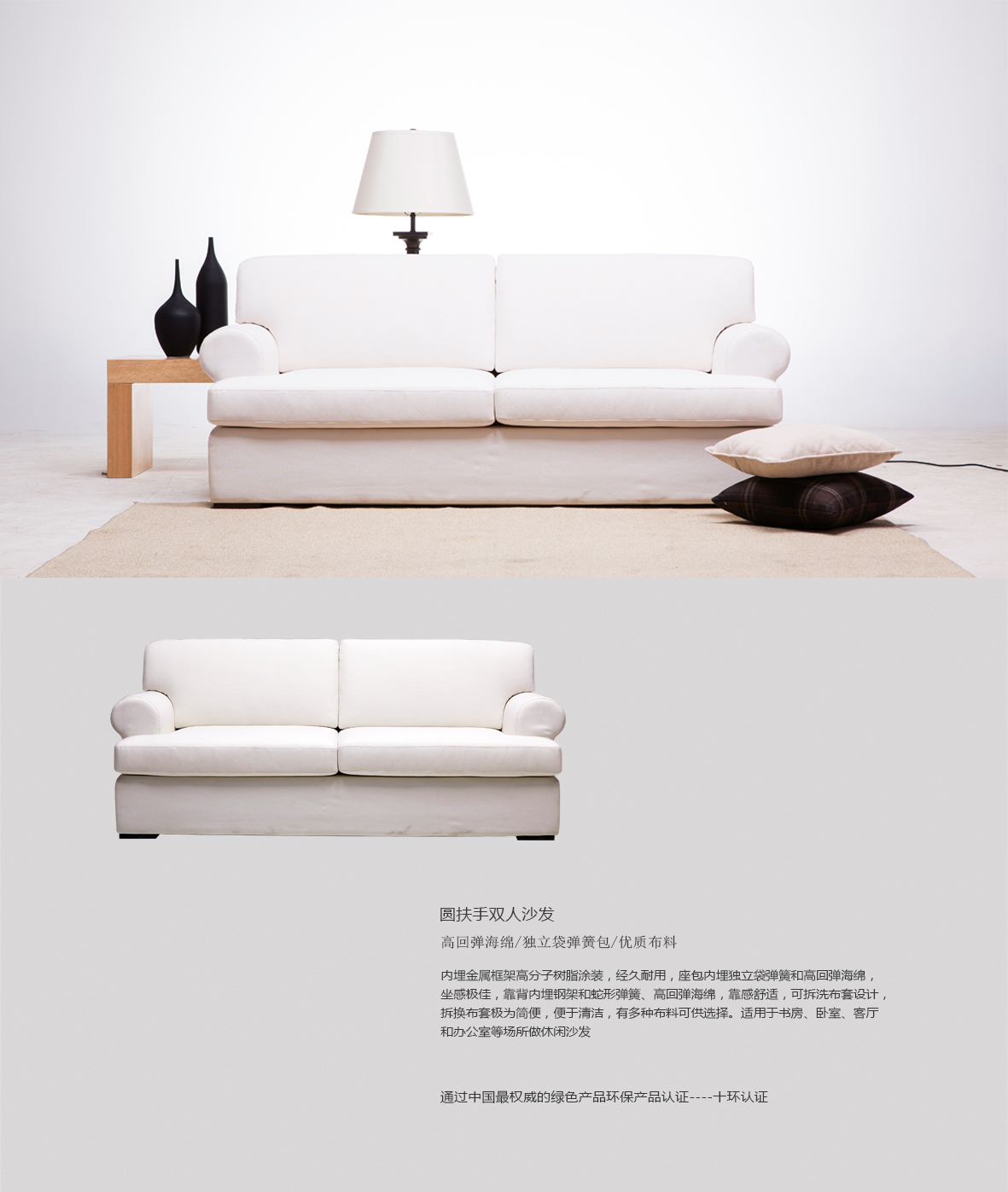 - 沙发内部填充物: 高回弹海绵、独立袋弹簧包