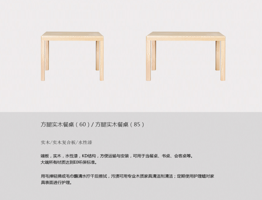 - 产品名称:方腿实木餐桌(60)/(85)